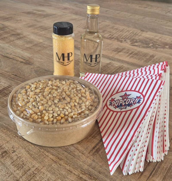 👉 Inclusief olie, suiker, mais & zakjes (genoeg voor ±40 porties)
